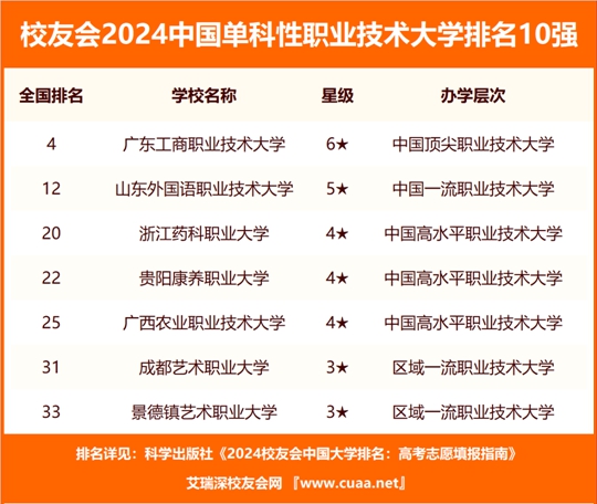 廣東工商職業(yè)技術(shù)大學(xué)問鼎2024中國單科性職業(yè)技術(shù)大學(xué)排名第一,山東外國語職業(yè)技術(shù)大學(xué)第二