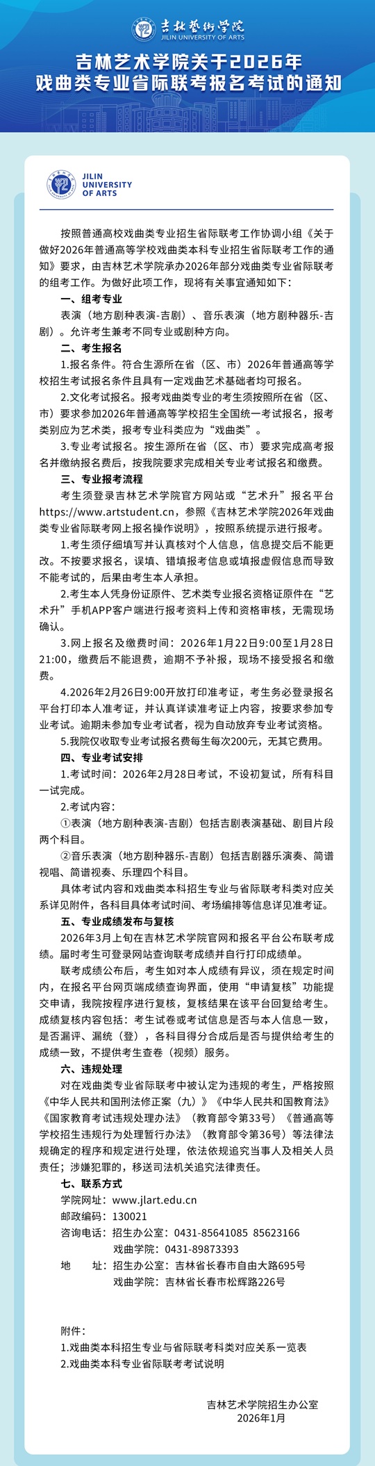 | 吉林藝術學院關于2026年戲曲類專業(yè)省際聯(lián)考報名考試的通知 |