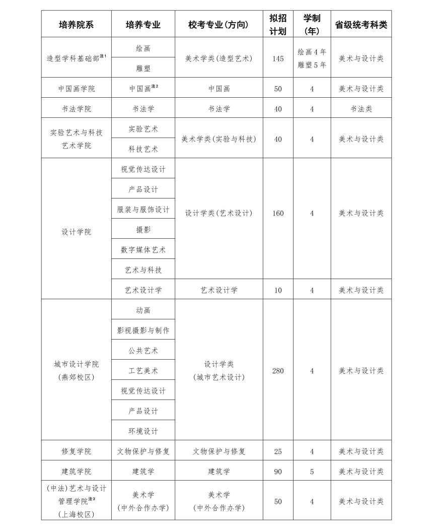 美術(shù)學(xué)類(造型藝術(shù))、中國(guó)畫、書法學(xué)、美術(shù)學(xué)類(實(shí)驗(yàn)與科技)、設(shè)計(jì)學(xué)類(藝術(shù)設(shè)計(jì))、藝術(shù)設(shè)計(jì)學(xué)、設(shè)計(jì)學(xué)類(城市藝術(shù)設(shè)計(jì))、文物保護(hù)與修復(fù)、建筑學(xué)、美術(shù)學(xué)(中外合作辦學(xué))專業(yè)面向華僑港澳臺(tái)聯(lián)招考生招收本科生。