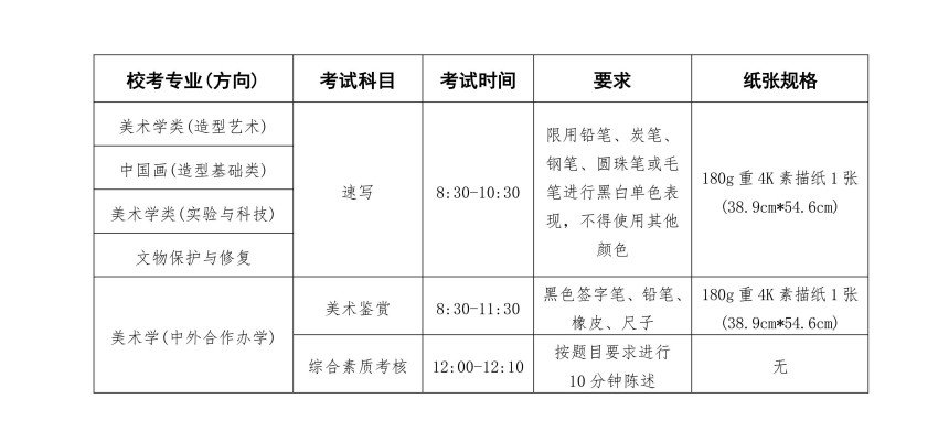 所有專業(yè)考試禁止使用油畫顏料,禁止使用各種圖文數(shù)字模板模具;現(xiàn)場(chǎng)考試禁止使用需外接電源的繪畫輔助工具及設(shè)備。
