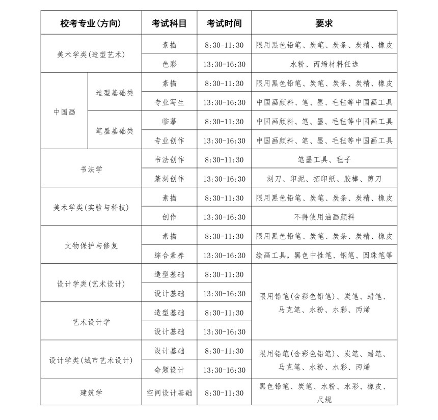 1.按照《教育部辦公廳關(guān)于做好2026年普通高等學(xué)校部分特殊類型招生工作的通知》工作要求,報(bào)考中央美術(shù)學(xué)院校考專業(yè)的考生須按《中央美術(shù)學(xué)院2026年本科招生?紝I(yè)(方向)省統(tǒng)考科類對(duì)應(yīng)要求》參加省統(tǒng)考?忌谌〉脤(duì)應(yīng)省統(tǒng)考成績(jī)合格的基礎(chǔ)上參加?。