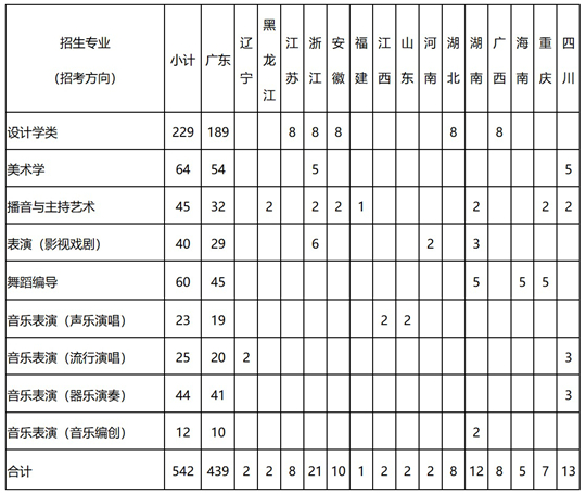 深圳大學(xué)2026年計劃招收國家任務(wù)全日制藝術(shù)類本科生約542名,具體如下: