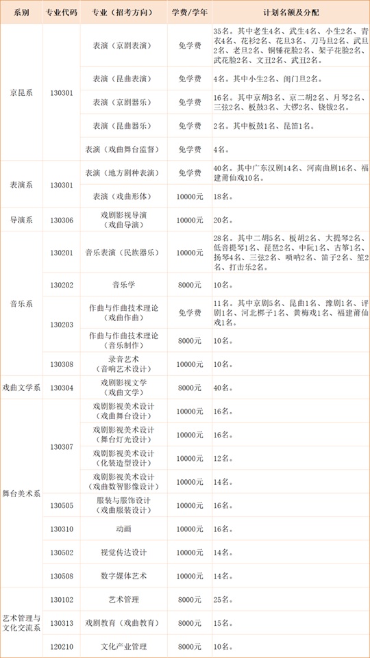 1.京昆系、表演系、導(dǎo)演系所有專業(yè)和作曲與作曲技術(shù)理論(戲曲作曲)專業(yè)不編制分省計(jì)劃,使用戲曲類專業(yè)省際聯(lián)考成績作為專業(yè)成績進(jìn)行錄取。