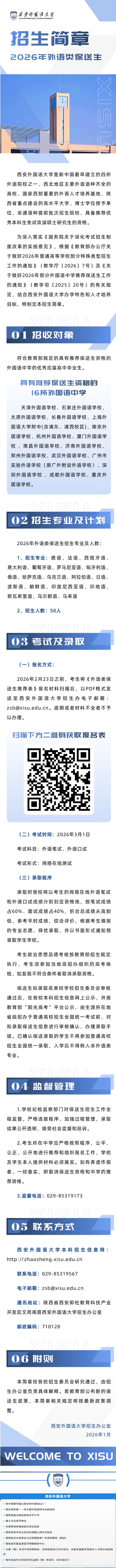 西安外國語大學2026年外語類保送生招生簡章