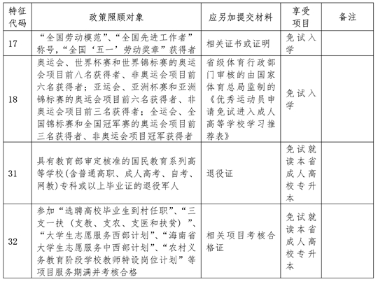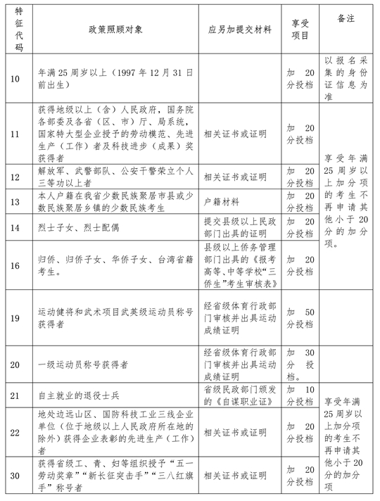 2.申請(qǐng)免試入學(xué)和照顧政策加分的考生,除上傳本人身份證和相應(yīng)的起點(diǎn)學(xué)歷證書外,還應(yīng)上傳以下相應(yīng)政策照顧免試和加分材料的掃描照片,同時(shí)在報(bào)名時(shí)間內(nèi)攜帶原件和復(fù)印件到所選的報(bào)名點(diǎn)進(jìn)行現(xiàn)場(chǎng)資格審查,最后以報(bào)名點(diǎn)現(xiàn)場(chǎng)資格審查通過為準(zhǔn)。因受新冠肺炎疫情影響,在報(bào)名時(shí)間內(nèi)無法到報(bào)名點(diǎn)進(jìn)行現(xiàn)場(chǎng)資格審查的,請(qǐng)聯(lián)系報(bào)名點(diǎn)。