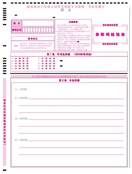 (五)領(lǐng)到條形碼、答題卡和試題卷時(shí)應(yīng)認(rèn)真檢查,發(fā)現(xiàn)分發(fā)錯(cuò)誤或印刷錯(cuò)漏、字跡不清、裝訂缺頁等問題,應(yīng)立即向監(jiān)考員報(bào)告;涉及試題內(nèi)容的疑問,不得向監(jiān)考員詢問。