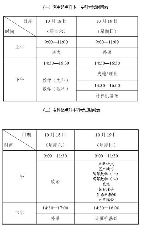 高中起點的語文、數(shù)學(xué)、外語(外語科目語種分英語、日語)、理化、史地,考試時間均為120分鐘;計算機基礎(chǔ)考試時間為90分鐘。各科目滿分均為150分。