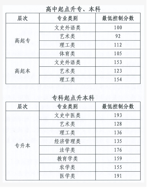 2025年北京市成人高校招生錄取最低控制分數(shù)線