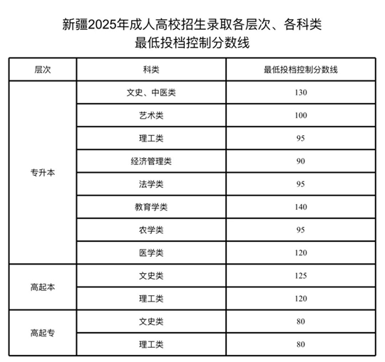 | 關(guān)于公布新疆2025年成人高校招生錄取最低投檔控制分?jǐn)?shù)線(xiàn)及錄取工作時(shí)間安排的公告 |