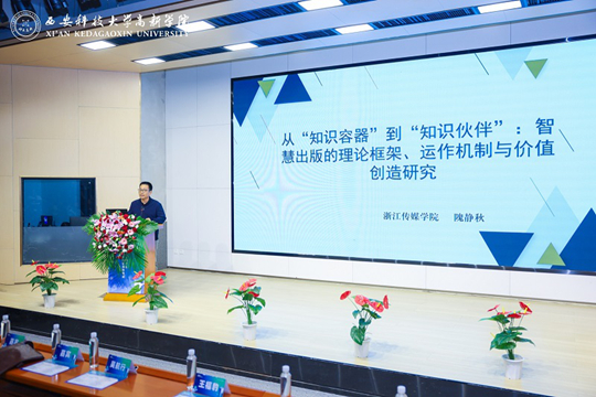 浙江傳媒學(xué)院出版學(xué)院副院長(zhǎng)、隗靜秋教授分享了主題為《從“知識(shí)容器”到“知識(shí)伙伴”:智慧出版的理論框架、運(yùn)作機(jī)制與價(jià)值創(chuàng)造研究》的報(bào)告。