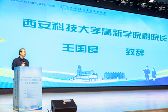 在儀式上,我院副院長(zhǎng)王國(guó)良代表西安科技大學(xué)高新學(xué)院全體師生,對(duì)市、區(qū)人社領(lǐng)導(dǎo)及參訓(xùn)教師表示熱烈歡迎。王院長(zhǎng)介紹了學(xué)院的辦學(xué)特色與“以就業(yè)為導(dǎo)向”的育人理念,強(qiáng)調(diào)此次培訓(xùn)對(duì)于提升師資能力、促進(jìn)就業(yè)工作的重要意義。他表示,學(xué)校將全力做好服務(wù)保障工作,并祝愿各位老師在培訓(xùn)中學(xué)有所獲、學(xué)以致用。