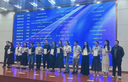 9月28日,第八屆全國數(shù)字創(chuàng)意教學(xué)技能大賽頒獎典禮在長沙理工大學(xué)圖書館報(bào)告廳隆重舉行。現(xiàn)場氛圍莊重而熱烈,獎項(xiàng)公布環(huán)節(jié)以顯示屏滾動公示的形式有序推進(jìn)——先是三等獎名單逐一呈現(xiàn),接著是二等獎揭曉,隨著流程進(jìn)入高潮,顯示屏上正式公布全國一等獎獲獎名單,西安科技大學(xué)高新學(xué)院崔麗華、劉曉克老師的教學(xué)團(tuán)隊(duì)與全國其他十余個(gè)優(yōu)秀競賽團(tuán)隊(duì)一同上榜。當(dāng)完整的一等獎名單公示完畢,全場隨即響起熱烈掌聲,向所有斬獲全國一等獎的優(yōu)秀教學(xué)團(tuán)隊(duì)致以敬意。隨后,劉曉克老師代表學(xué)院團(tuán)隊(duì)受邀上臺,從評委手中鄭重接過榮譽(yù)證書。這一高光時(shí)刻,不僅是對崔麗華、劉曉克兩位老師教學(xué)能力與創(chuàng)新水平的高度肯定,更彰顯了學(xué)院在全國數(shù)字創(chuàng)意教學(xué)領(lǐng)域的實(shí)力,亦是學(xué)院數(shù)字創(chuàng)意教學(xué)成果的重要見證。