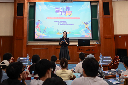 院長助理、實(shí)習(xí)與就業(yè)服務(wù)中心主任葉志筑介紹,學(xué)校通過積極加強(qiáng)與各地相關(guān)部門交流合作,全面加強(qiáng)供需對接活動,優(yōu)化就業(yè)服務(wù)等方面,力促畢業(yè)生就業(yè)。據(jù)悉,校園招聘會之外,活動當(dāng)天,主辦方同步組織廈門城市引才推介會,由廈門市人才服務(wù)中心事業(yè)服務(wù)部副部長陳玲玲和思明區(qū)人才中心主任林程興做城市名片推薦和就業(yè)政策宣講。廈門飛博共創(chuàng)網(wǎng)絡(luò)科技股份有限公司等三家廈門企業(yè)代表現(xiàn)場宣講。他們向嘉庚學(xué)子發(fā)出邀請,期待大家把廈門作為職業(yè)規(guī)劃的重要一站,在廈門發(fā)展浪潮中揚(yáng)帆遠(yuǎn)航。