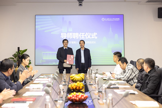 為強化實踐教學力量,學院決定聘任馬濤、姚軍鋒、邢延安、趙剛等 15 位優(yōu)秀企業(yè)家代表為產(chǎn)業(yè)導師。儀式上,王國良副院長宣讀聘任決定,明確產(chǎn)業(yè)導師將承擔三大職責:參與專業(yè)建設與課程改革,融入產(chǎn)業(yè)前沿知識與實戰(zhàn)案例;指導學生實踐實訓、畢業(yè)設計,提升職業(yè)技能與素養(yǎng);為校企合作深化、人才培養(yǎng)模式創(chuàng)新提供資源支持。隨后,王國良副院長為產(chǎn)業(yè)導師代表現(xiàn)場頒發(fā)聘任證書。