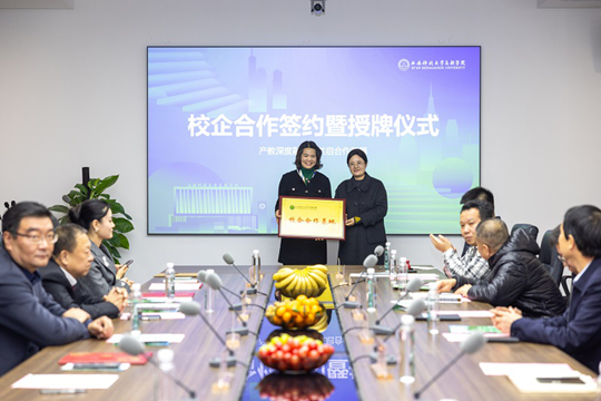 儀式核心環(huán)節(jié),西安科技大學高新學院與西安市商業(yè)企業(yè)協(xié)會率先簽署戰(zhàn)略合作框架協(xié)議,并舉行 “校企合作基地” 授牌儀式,同時我校被授予西安商業(yè)企業(yè)協(xié)會常務副會長單位。標志著雙方將在人才培養(yǎng)、實習就業(yè)、項目研發(fā)等領域開展長期深度合作。隨后,學院及二級學院分別與西安冰峰飲料、西安眾天蜂業(yè)、西安市商標事務所、西安廣播電視臺交通旅游廣播、西安蜂窩文化傳媒、西安三優(yōu)眼視光等 6 家企業(yè)簽署合作協(xié)議并授牌。其中,經(jīng)濟管理與傳媒藝術學院將重點對接企業(yè)電商運營、品牌傳播需求,科技與工程學院將聚焦智能制造、數(shù)字化人才培養(yǎng),共同打造 “定制培養(yǎng)、實習就業(yè)、項目合作” 一體化的校企合作新模式。