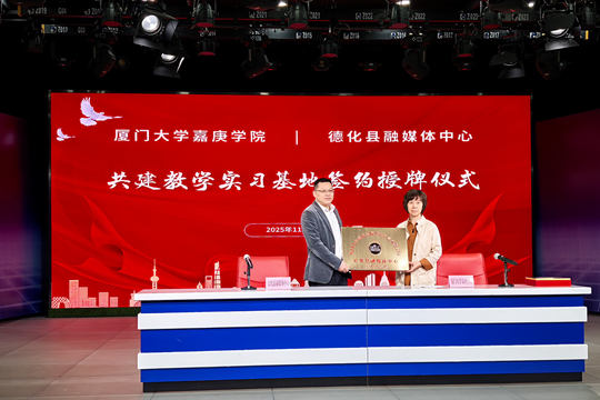 當(dāng)天上午,德化縣融媒體中心與英語語言文化學(xué)院的合作共建簽約儀式在德化縣融媒體中心舉行。雙方代表共同簽署了合作協(xié)議,并進(jìn)行了“實(shí)習(xí)實(shí)踐基地”授牌。根據(jù)協(xié)議,德化縣融媒體中心將成為廈門大學(xué)嘉庚學(xué)院英語語言文化學(xué)院學(xué)生穩(wěn)定的校外實(shí)踐平臺(tái),為學(xué)生提供面向國際的新聞采編、視頻制作、新媒體運(yùn)營、跨文化傳播、活動(dòng)策劃等全方位的實(shí)習(xí)崗位與專業(yè)指導(dǎo)。