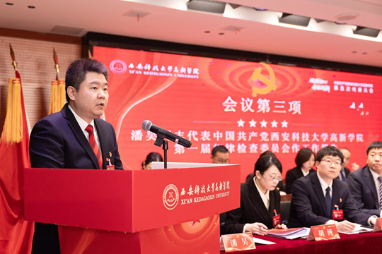 潘昊同志代表中國共產(chǎn)黨西安科技大學(xué)高新學(xué)院第一屆紀(jì)律檢查委員會(huì),向大會(huì)作《夯實(shí)全面從嚴(yán)治黨和黨風(fēng)廉政建設(shè)主體責(zé)任 為學(xué)院高質(zhì)量發(fā)展提供堅(jiān)強(qiáng)政治保障》工作報(bào)告,系統(tǒng)總結(jié)了學(xué)院在壓實(shí)全面從嚴(yán)治黨責(zé)任、構(gòu)建“不敢腐、不能腐、不想腐”長效機(jī)制、營造風(fēng)清氣正育人環(huán)境方面的實(shí)踐與成果。
