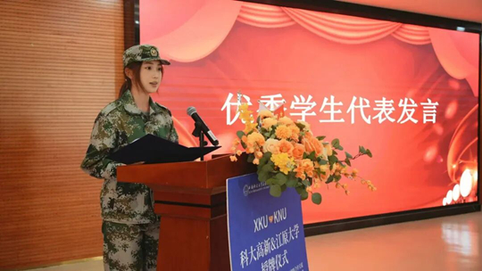 江原大學(xué)2025級(jí)新生代表徐可發(fā)言,分享了對(duì)未來(lái)大學(xué)生活的期待與規(guī)劃:“對(duì)于未來(lái)即將在江原大學(xué)開(kāi)啟的三年學(xué)習(xí)生活充滿了向往,中韓兩國(guó)在文化上有著不少共通之處,我想象著在江原大學(xué)的校園里,能參與豐富多彩的校園活動(dòng),感受韓國(guó)文化帶來(lái)的新鮮與驚喜!