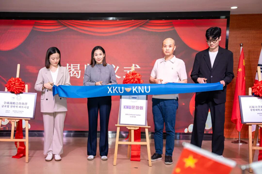 在全場(chǎng)師生的共同見(jiàn)證下,兩校代表圓滿完成授牌并進(jìn)行剪彩儀式。剪彩的瞬間,不僅是兩校合作的 “里程碑”,更承載著對(duì)學(xué)子成長(zhǎng)的期許——未來(lái),西安科技大學(xué)高新學(xué)院學(xué)生將有更多機(jī)會(huì)獲得江原大學(xué)的升學(xué)支持、短期交流名額,在中韓教育融合的平臺(tái)上實(shí)現(xiàn)夢(mèng)想進(jìn)階。