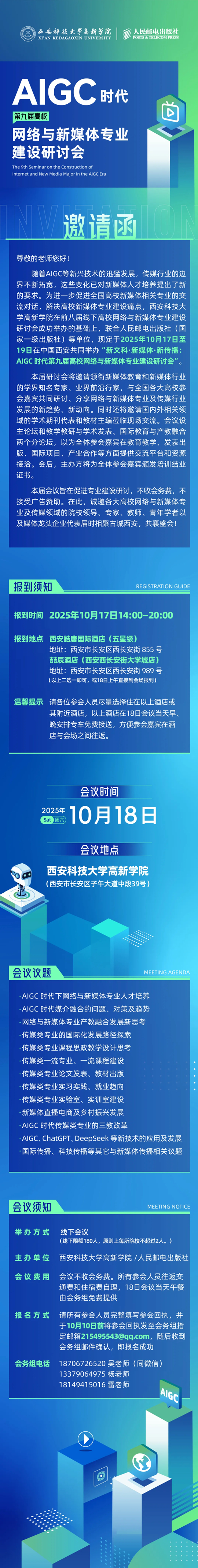 聯(lián)合人民郵電出版社等權(quán)威機構(gòu)將共同主辦“新文科·新媒體·新傳播:AIGC時代第九屆高校網(wǎng)絡(luò)與新媒體專業(yè)建設(shè)研討會”。