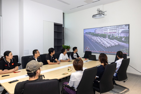 。▓D八)國旗班組織同學們觀看閱兵直播