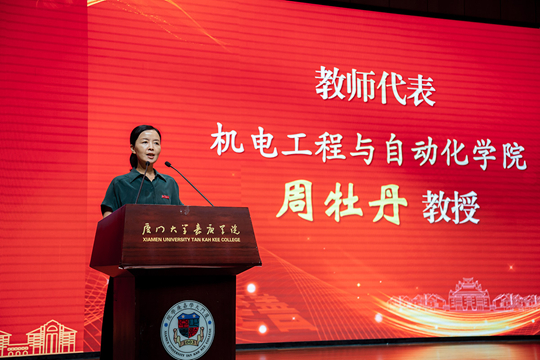 “實(shí)踐與創(chuàng)新是理工學(xué)子最硬的‘敲門磚’!崩砉た茍(chǎng)教師代表、機(jī)電工程與自動(dòng)化學(xué)院自動(dòng)化教研室主任周牡丹教授結(jié)合理工學(xué)科特點(diǎn),提出三點(diǎn)建議:一是筑牢基礎(chǔ),拒絕“淺嘗輒止”;二是擁抱實(shí)踐,敢于“動(dòng)手試錯(cuò)”;三是保持好奇,主動(dòng)“鏈接未來”!皩I静皇菍W(xué)習(xí)的終點(diǎn),而是開啟更高層次探索的新起點(diǎn)!敝苣档け硎荆谶@段新征程中,老師們將全力支持學(xué)子的每一次嘗試,做大家最堅(jiān)實(shí)的后盾。她祝愿新生在“嘉”既能收獲知識(shí)成長,也能找到奮斗方向,用專業(yè)能力書寫精彩篇章。