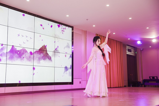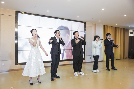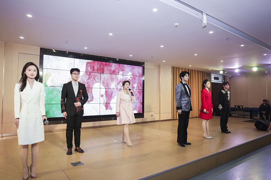 轉(zhuǎn)向“現(xiàn)代新聲”篇章,演出凸顯專業(yè)教學的現(xiàn)代面向與跨界融合,展現(xiàn)實踐教學對課堂內(nèi)容的拓展與延伸。配音秀《“景”然如此》中,師生攜手以聲造景、用音塑情,將“聲音即場景”的課堂理念轉(zhuǎn)化為鮮活的舞臺實踐;鋼琴獨奏《彩云追月》靈動悠揚,在琴鍵上完成中西文化的巧妙對話;大合唱《相親相愛》溫暖和聲匯聚全場情感,將“聲越千年,長安永不落幕”的主題升華,也凝聚起師生同心、教學相長的育人力量。