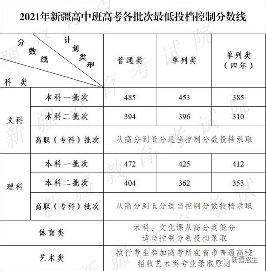 | 2021年新疆高中班高考各批次最低投檔控制分?jǐn)?shù)線確定 錄取工作將于7月18日開始 |