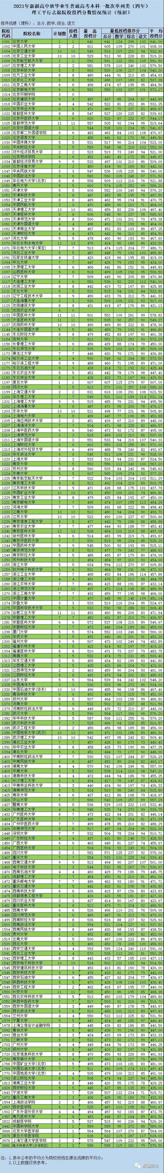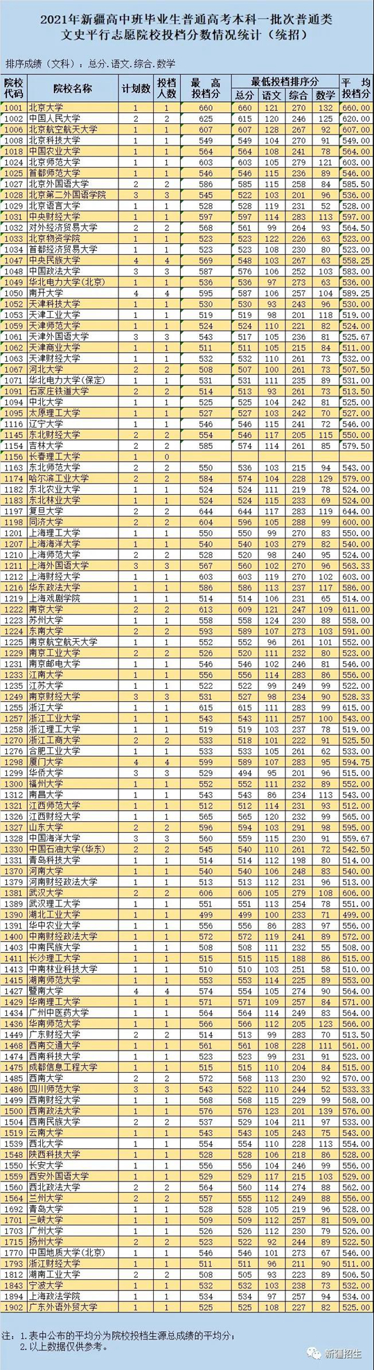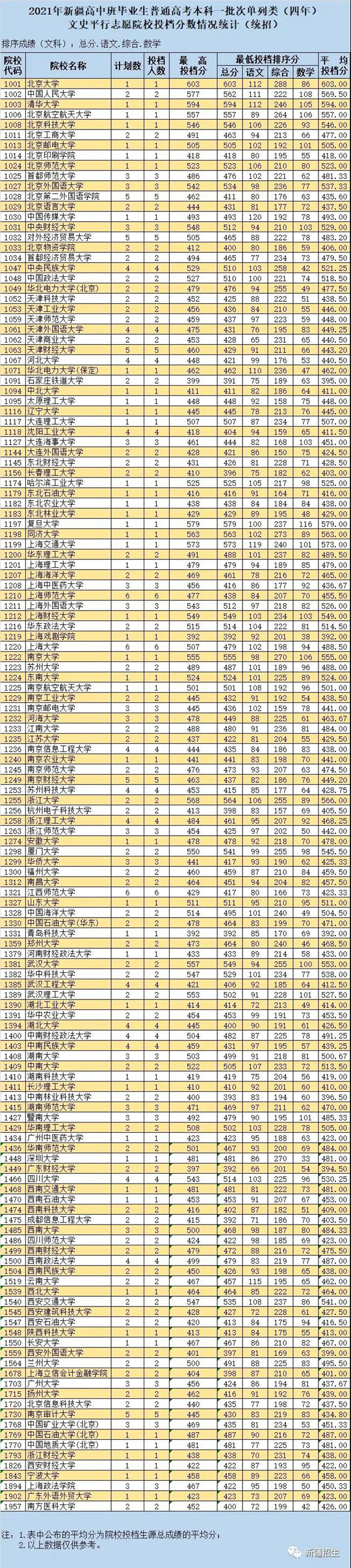 2021年新疆高中班畢業(yè)生普通高校招生本科一批次投檔線