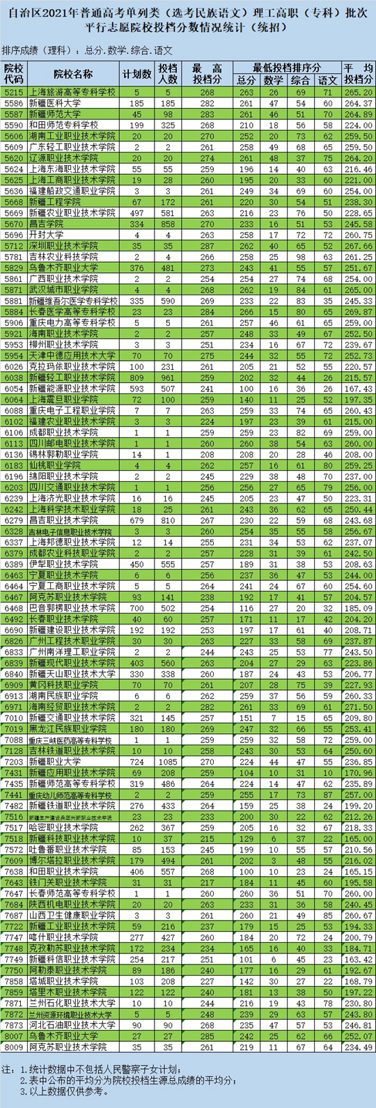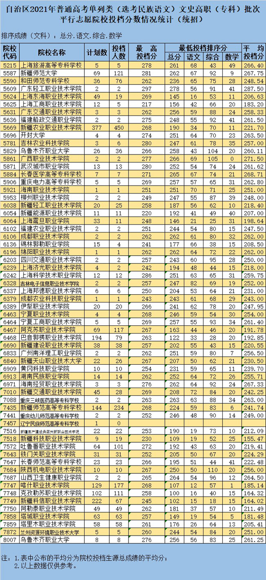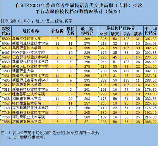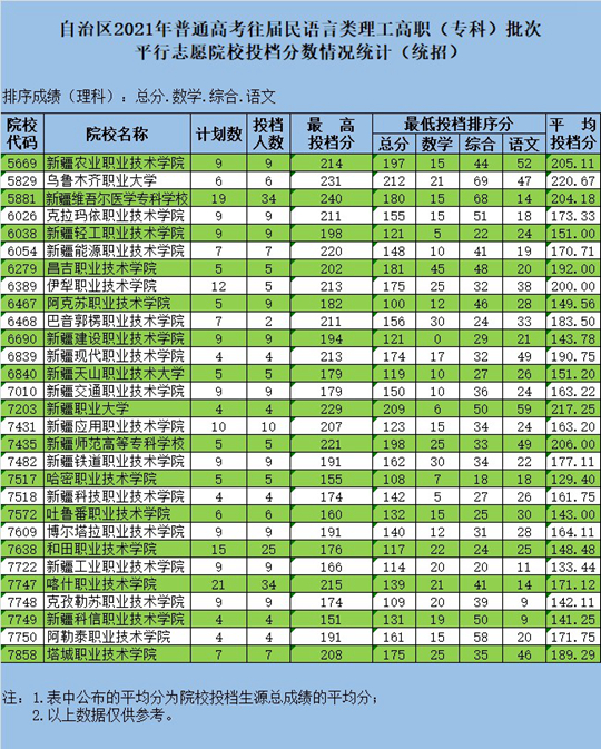 新疆維吾爾自治區(qū)2021年普通高校招生投檔情況統(tǒng)計-?婆