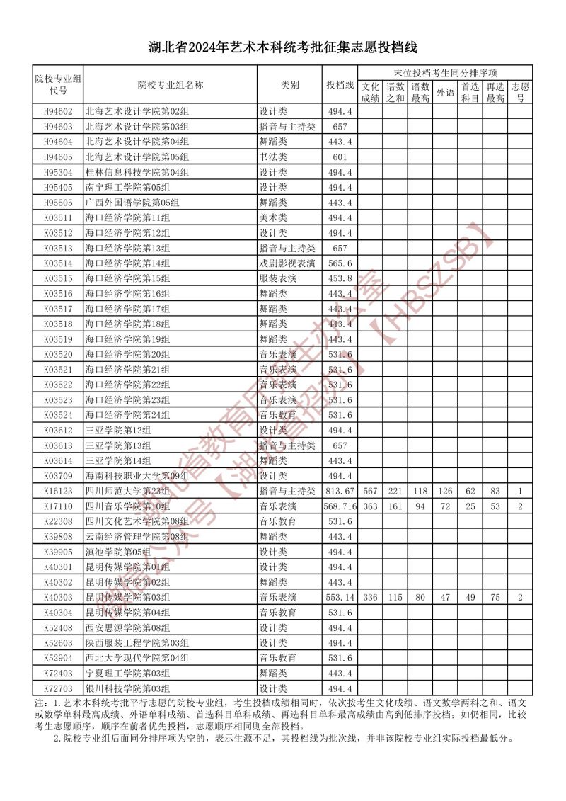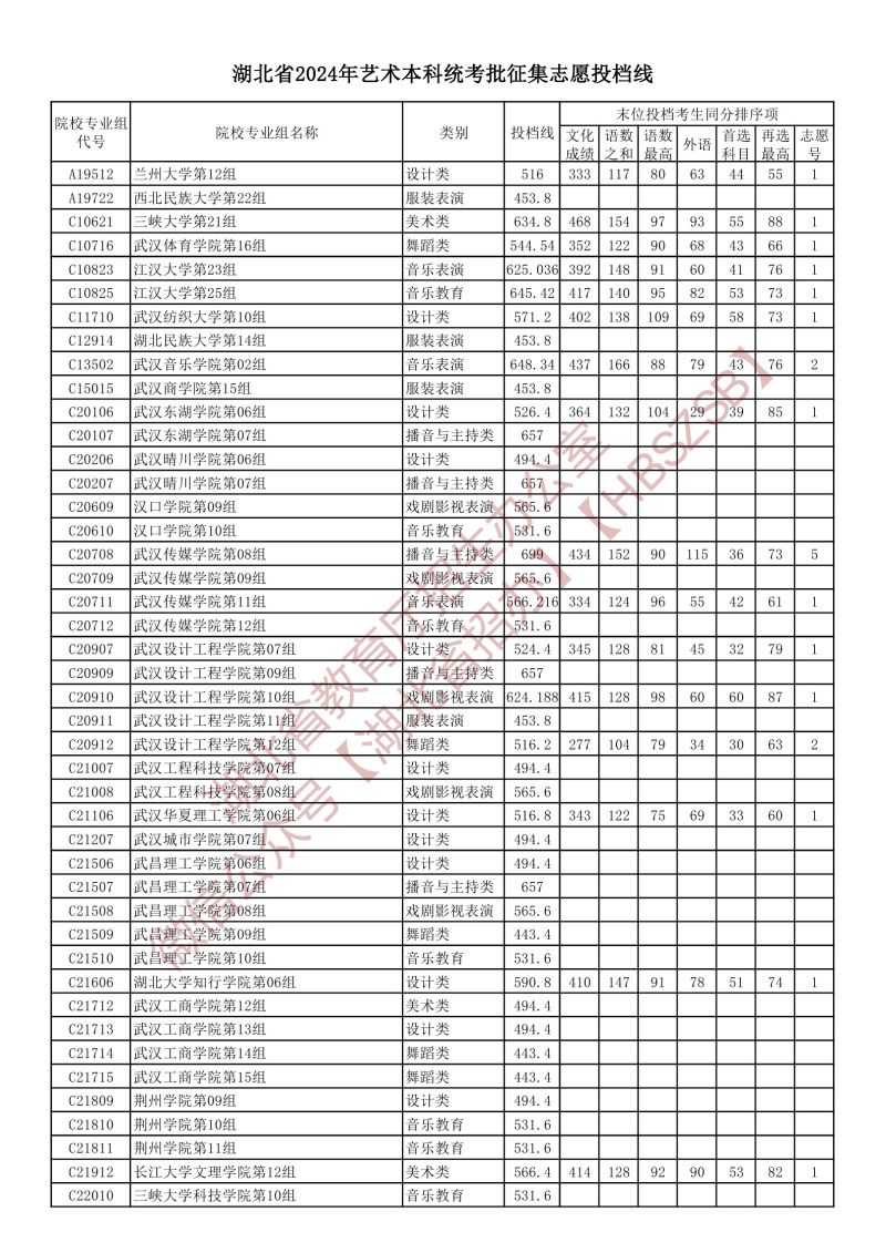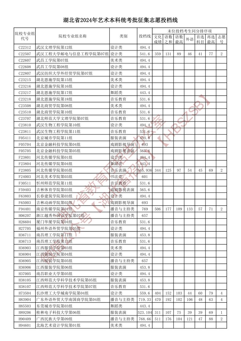湖北省2024年藝術(shù)本科統(tǒng)考批征集志愿投檔線(xiàn)