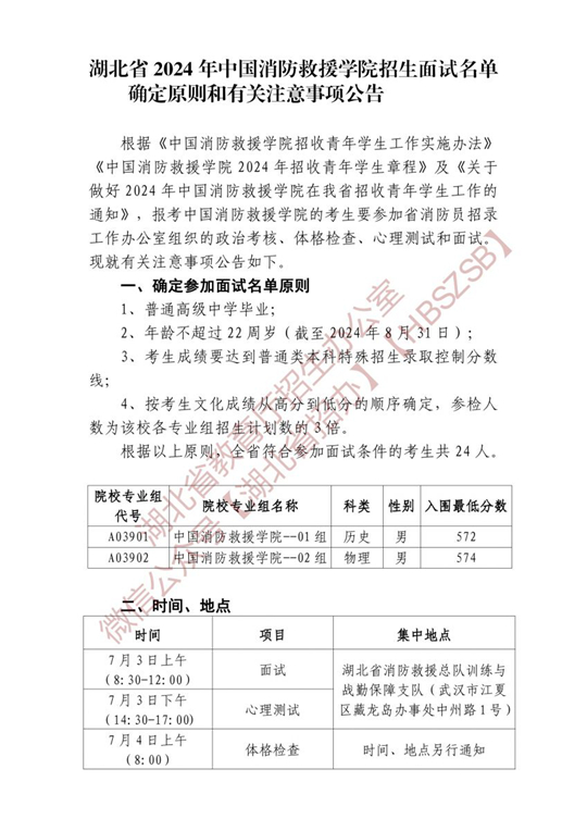 2024年中國(guó)消防救援學(xué)院在湖北省招生面試名單確定原則和有關(guān)注意事項(xiàng)公告