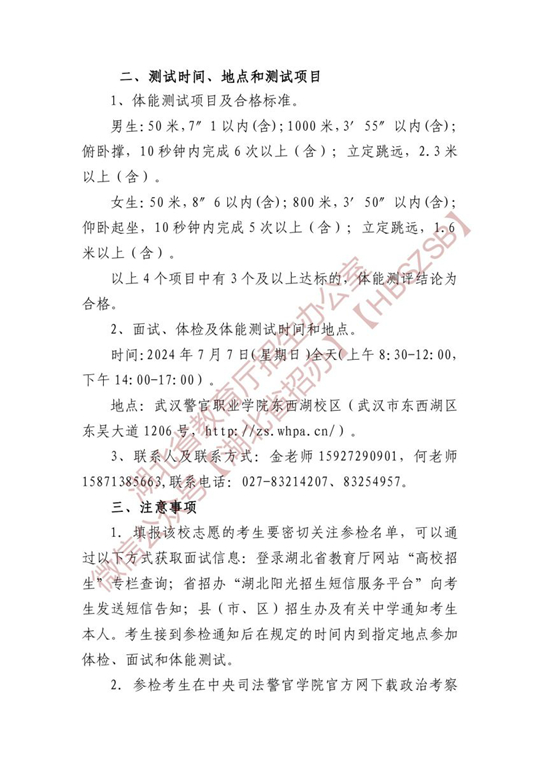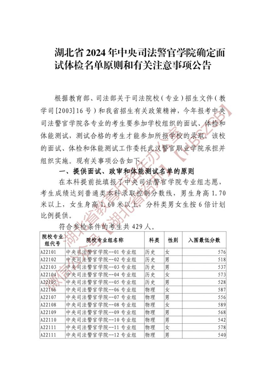 湖北省2024年中央司法警官學(xué)院確定面試體檢名單原則和有關(guān)注意事項(xiàng)公告