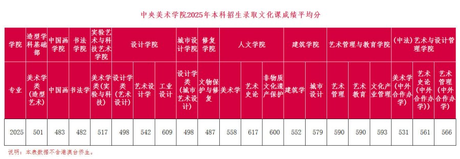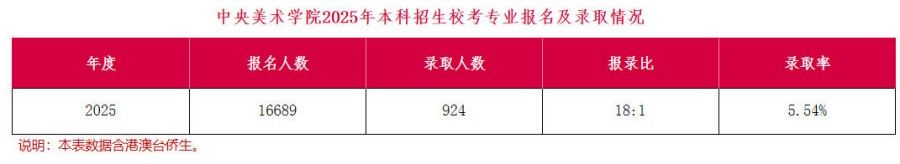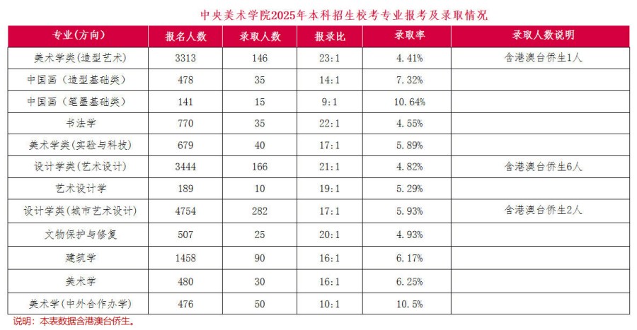 中央美術(shù)學(xué)院2025年本科招生錄取數(shù)據(jù)參考