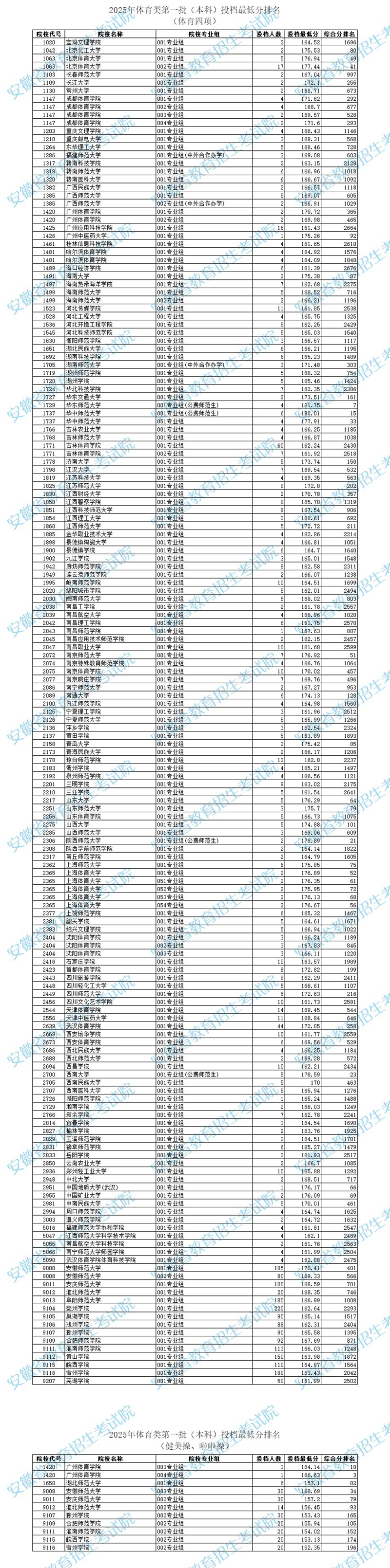 安徽:2025年體育類第一批(本科)投檔最低分排名