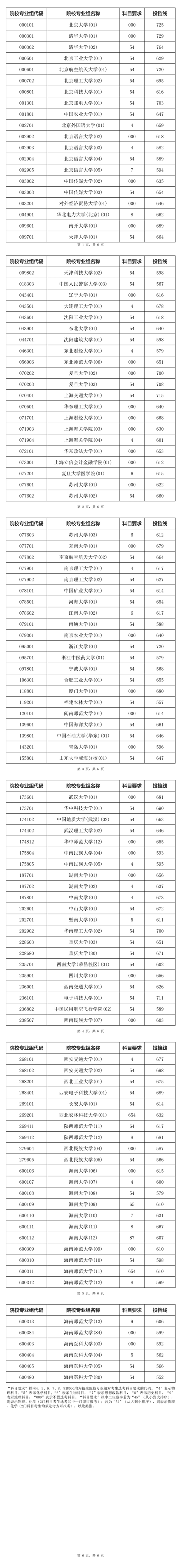 2025年海南省普通高校招生錄取國家專項計劃平行志愿院校專業(yè)組投檔分?jǐn)?shù)線