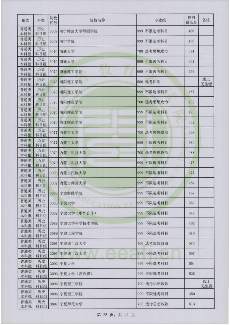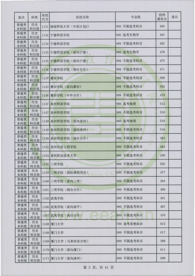 福建:2025年普通類本科批常規(guī)志愿院校專業(yè)組投檔最低分公布(歷史科目組)