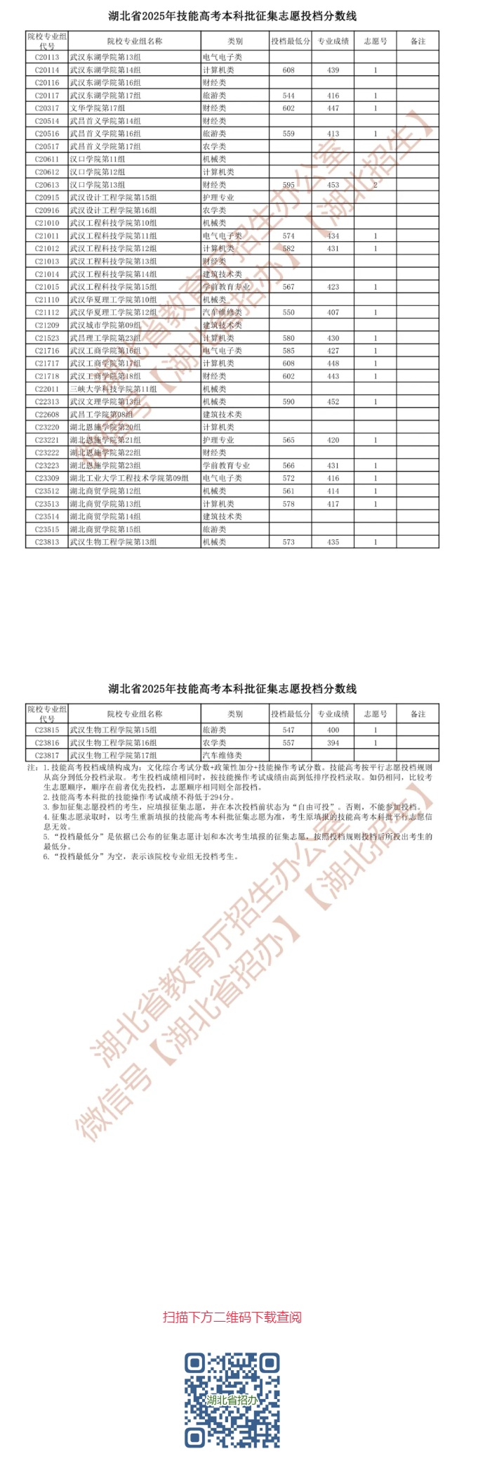 湖北省2025年技能高考本科批征集志愿投檔分?jǐn)?shù)線