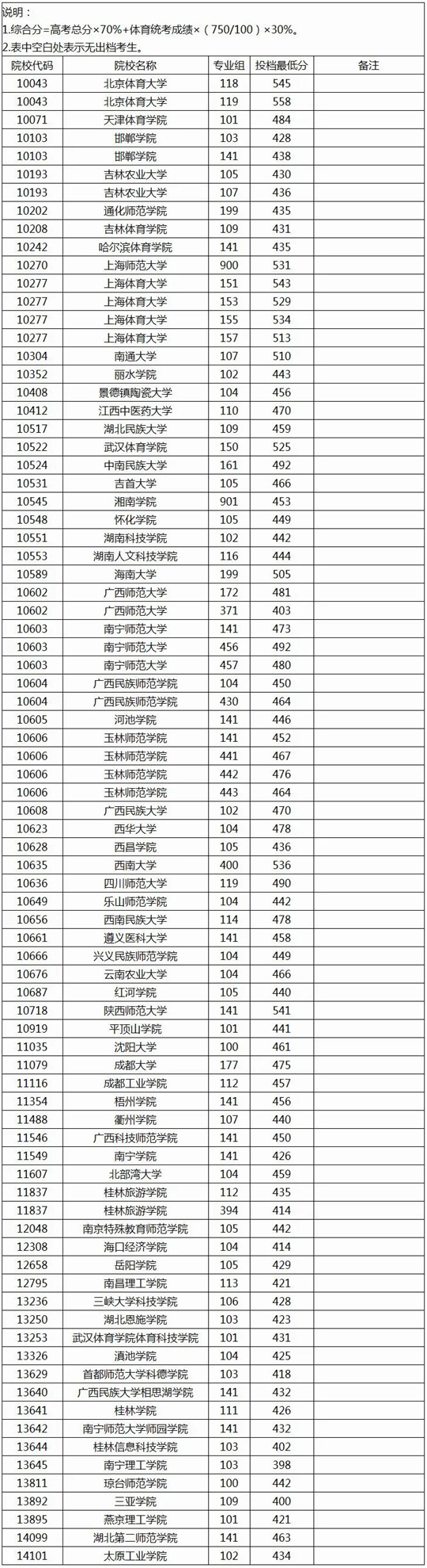 廣西2025年普通高校招生本科提前批體育類院校專業(yè)組投檔最低分?jǐn)?shù)線(首選歷史科目組)