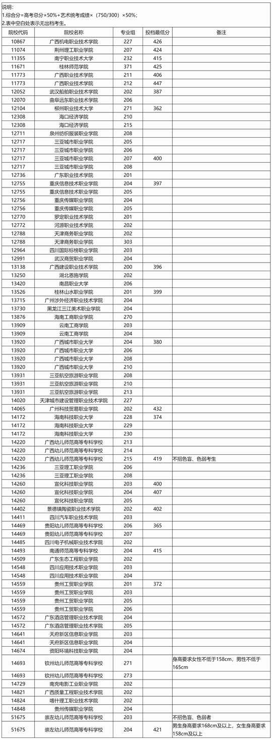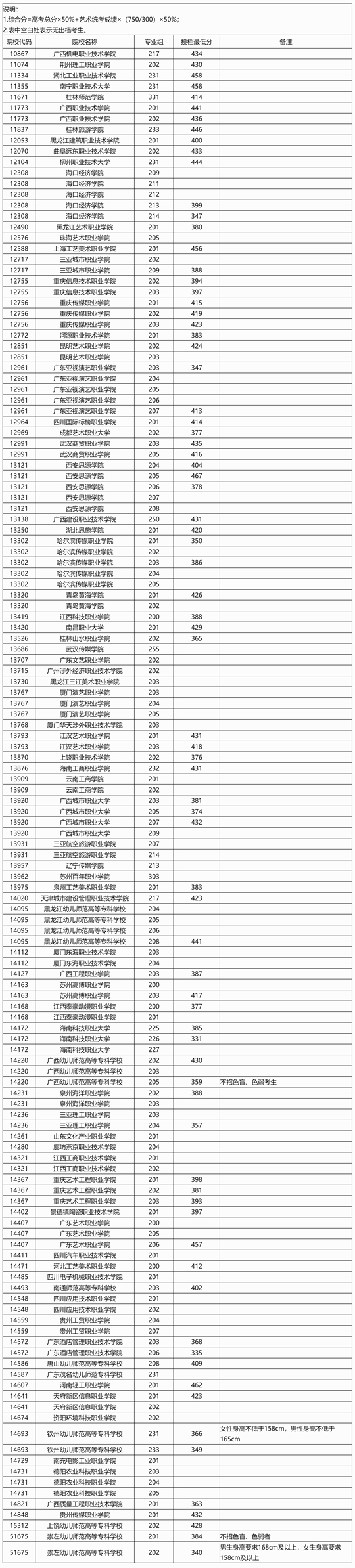 2025年高職高專提前批藝術(shù)類院校專業(yè)組第一次征集投檔最低分?jǐn)?shù)線(首選物理科目組)