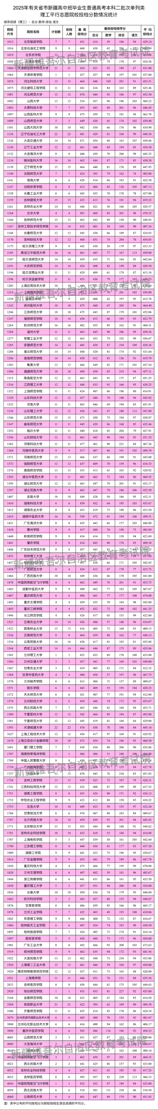 新疆維吾爾自治區(qū)2025年普通高校招收有關(guān)省市新疆高中班畢業(yè)生本科二批次投檔情況