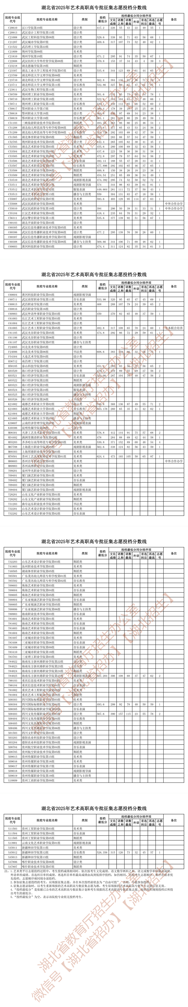 湖北省2025年藝術(shù)高職高專批征集志愿投檔分?jǐn)?shù)線