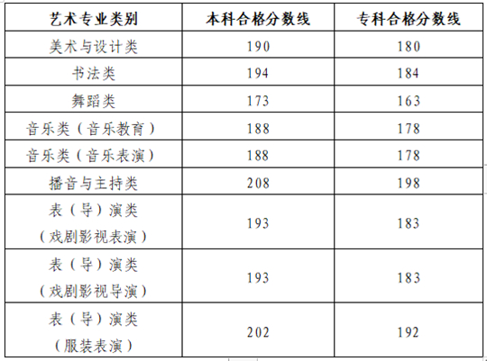 | 山東省2026年普通高校招生藝術(shù)類專業(yè)統(tǒng)考合格分?jǐn)?shù)線 |