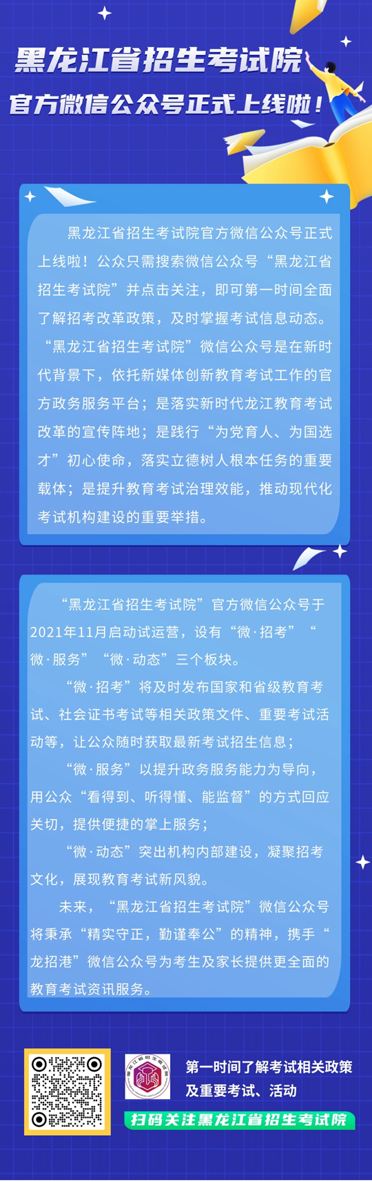 黑龍江省招生考試院官方微信公眾號(hào)正式上線啦!