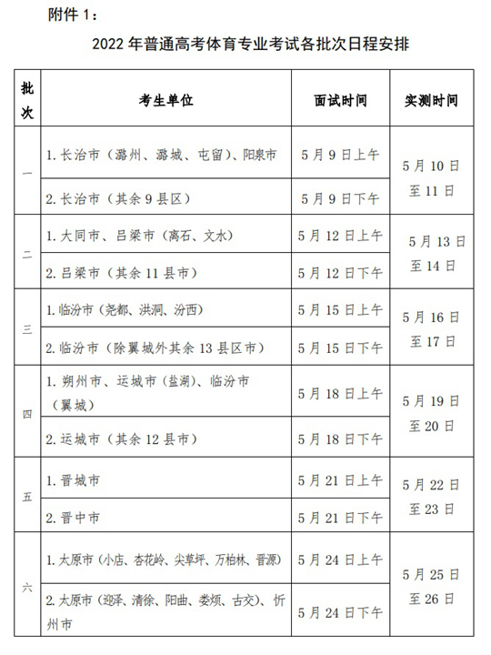 附件1:2022年普通高考體育專業(yè)考試各批次日程安排 點(diǎn)擊查看
