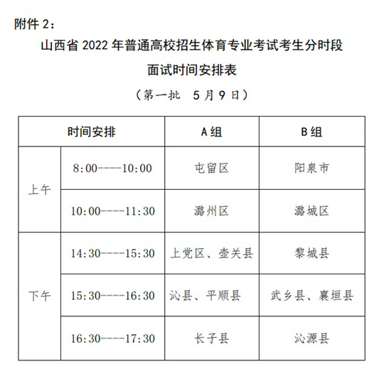 附件2:2022年普通高校招生體育專業(yè)考試考生分時(shí)段面試時(shí)間安排表 點(diǎn)擊查看
