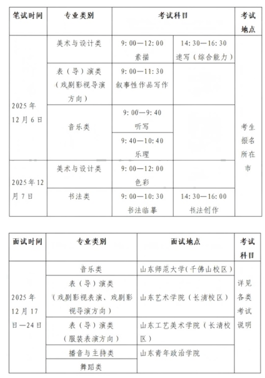 | 山東省2026年普通高等學校招生藝術(shù)類專業(yè)統(tǒng)一考試公告 |