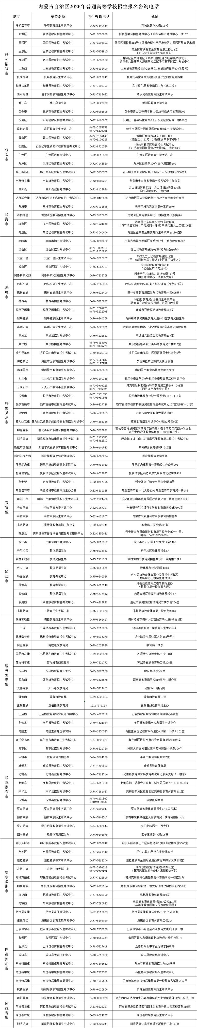 內(nèi)蒙古自治區(qū)2026年普通高等學(xué)校招生報(bào)名咨詢電話