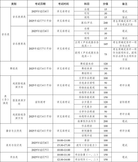 自治區(qū)2026年普通高等學(xué)校招生藝術(shù)類專業(yè)統(tǒng)考科目及時間表