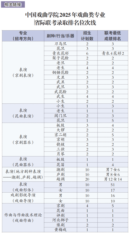 中國(guó)戲曲學(xué)院教務(wù)處處長(zhǎng)、本科招生辦公室主任王瑩表示,學(xué)校近年增加了戲劇教育(戲曲教育)專業(yè),該專業(yè)是戲曲與教育、人文與社科融合的交叉學(xué)科,培養(yǎng)通曉中華優(yōu)秀傳統(tǒng)文化、懂得藝術(shù)教育規(guī)律、能夠從事戲曲教學(xué)與普及推廣的高素質(zhì)人才,其課程與實(shí)踐體系注重與中小學(xué)、文化場(chǎng)館等單位合作,以適應(yīng)社會(huì)對(duì)藝術(shù)教育人才的迫切需求。